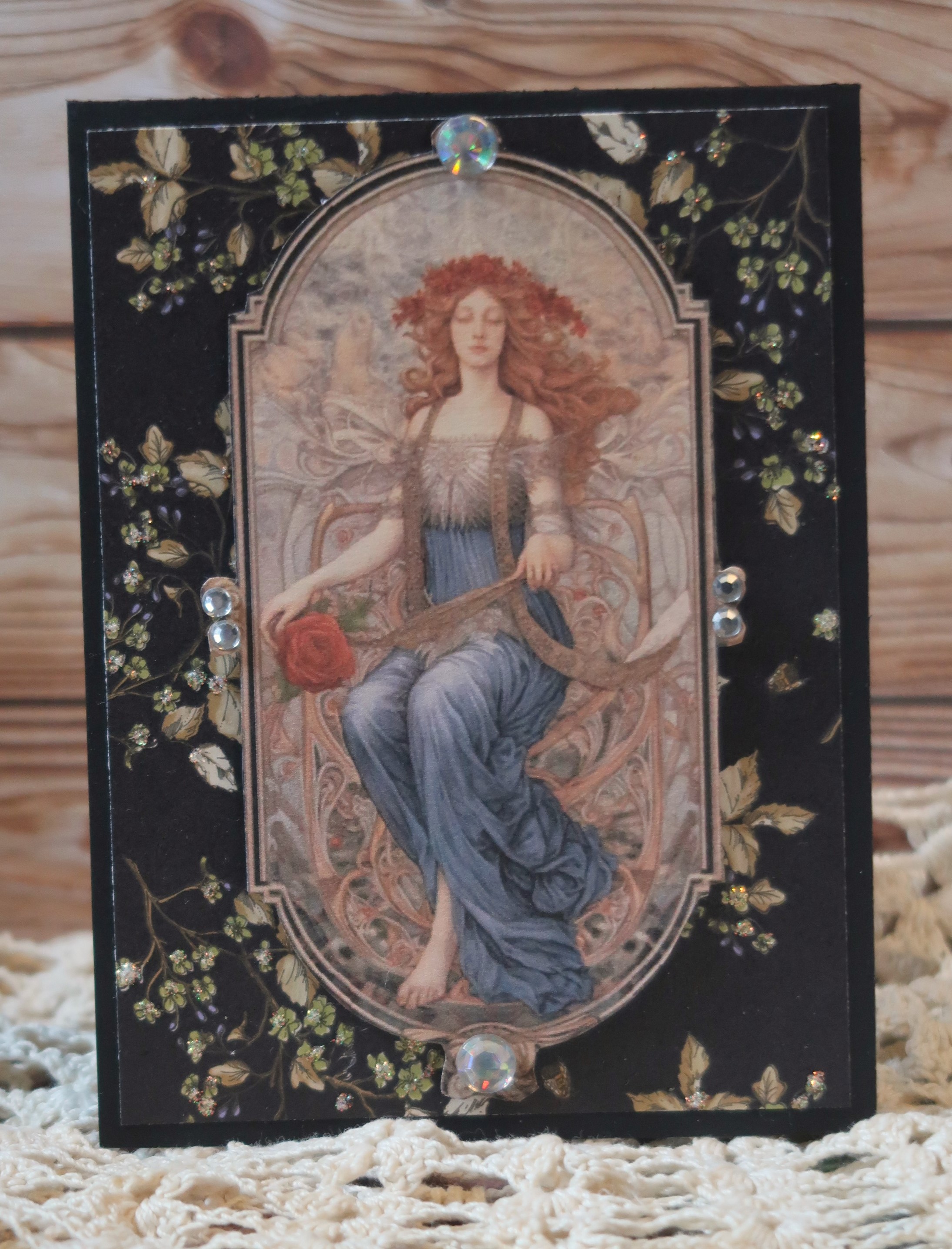 The first is the Christmas Challenge. I just adore this sweet vintage image. She is just darling don't you think? Can you guess what the foundation for this is? Betcha can't....